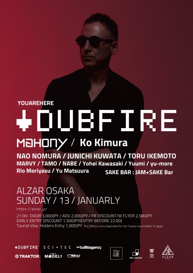 話題のアーティストを招聘し開催する関西屈指のテクノパーティー”YOUAREHERE”がSCI+TECグラミー賞受賞アーティスト、” DUBFIRE”、そして日本DJ界のパイオニア、”KO KIMURA”をゲストに迎えて開催決定!!