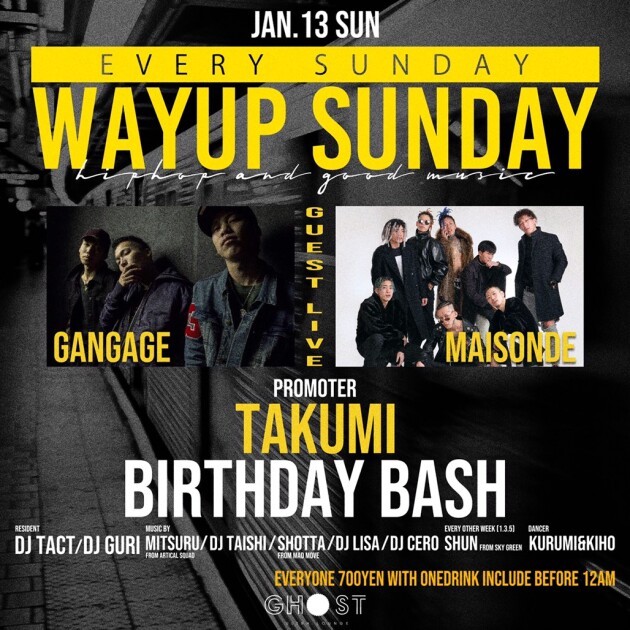 ユース・カルチャーの最先端はアメ村にあり!次世代を担うアクトたちが集い「今が旬」のミュージックを体感するならGhost ultra loungeの毎週日曜日「Way Up Sunday」!