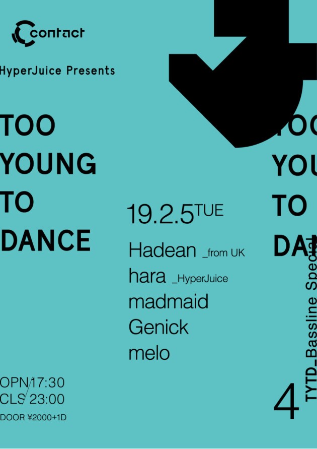 The specialist of bass line/house is gathering at Contact. hara from HyperJuice, Genick who have release from label 〈Attack The Music〉, 〈Low Pitch Records〉and madmaid the bass line/house artist will be playing.