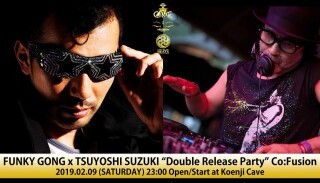 昨年12月に開催したロングセットパーティーでは7時間以上のプレイを聞かせた世界に誇るMATSURI DIGITALのTSUYOSHI SUZUKIと、盟友であり共に楽曲製作などを行なってきたFUNKY GONGの2人が高円寺CAVEでダブルリリースパーティーを開催!