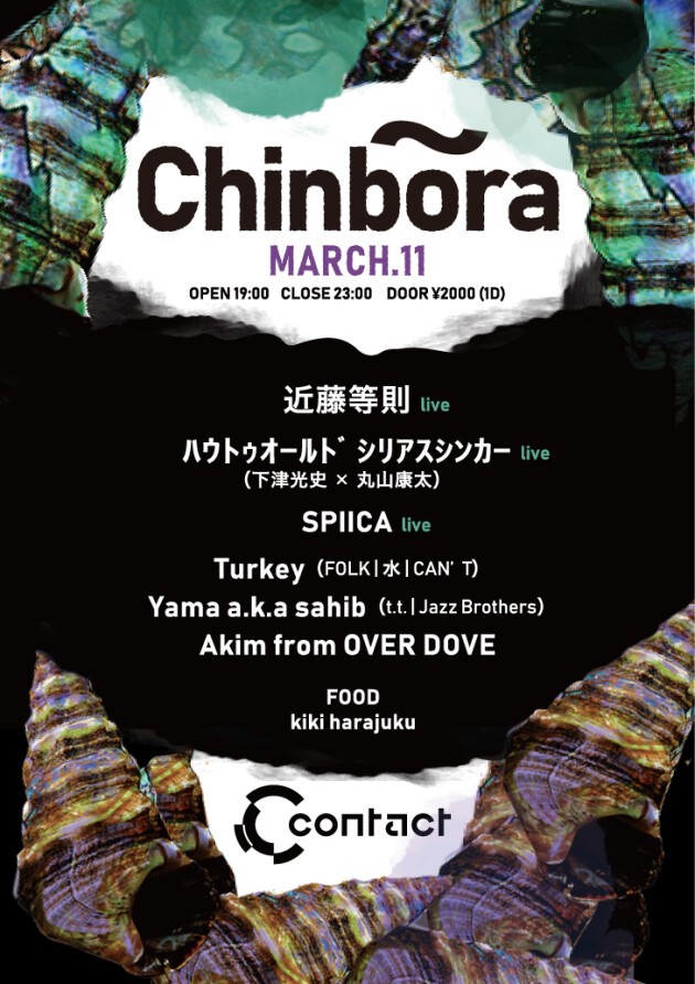 音に命を与え、生命を音で染める若き選曲家Turkey (FOLK/水) が主催する新イベントChinbōra、第1回目の開催が決定。皆様の心に電撃が走ることを密かに期待する。