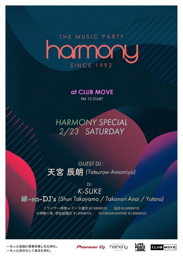 音楽を取り巻く環境の変化が著しい昨今、このHARMONYだけはいつも変わらず温かい場所であり続けたいと思います。