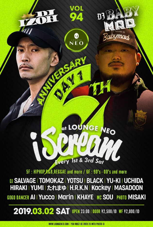 SPECIAL GUESTにはDMC World Champion のDJ IZOHを迎えiScreamの6周年を盛り上げます!!