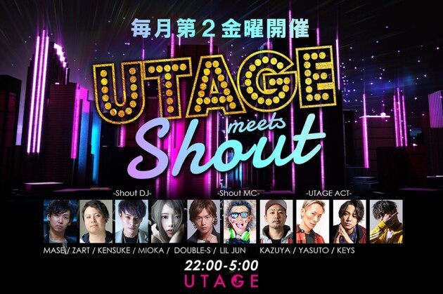2018年に再始動した東海圏を中心に活躍中の個性豊かなキャストが集結した人気パーティー”Shout”が毎月第2金曜日にUTAGEで開催!