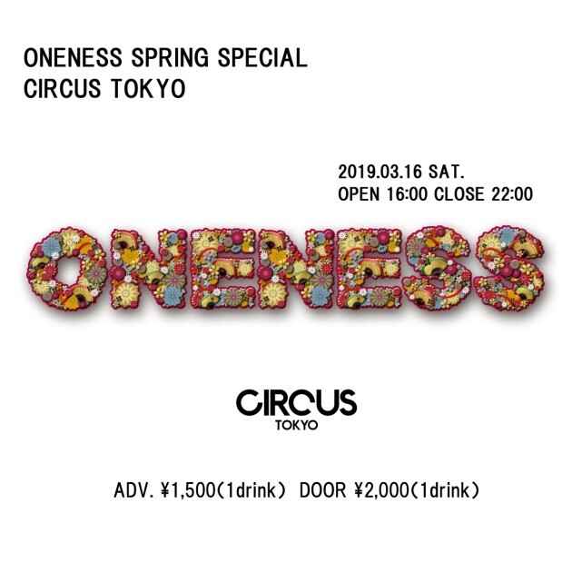 平成もいよいよ終わりを迎えようとしています。平成最後のONENESSは3月16日(土)16:00~22:00にCIRCUS TOKYOにて開催です!