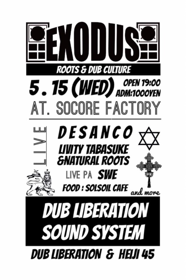 DUB LIBERATIONのお届けするDUB SOUND / ROOTS SOUNDとSOCORE FACTORYの空間演出のマッチングを是非お楽しみください。