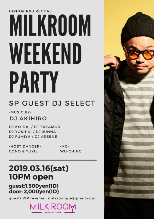 3/16(sat) 10PM open 【MILKROOM Weekend Party】