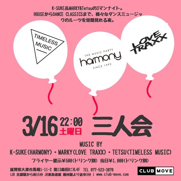 DJ : K-SUKE(HARMONY) / MARKY(LOVE TRAXX) / Tetsu(TIMELESS MUSIC)