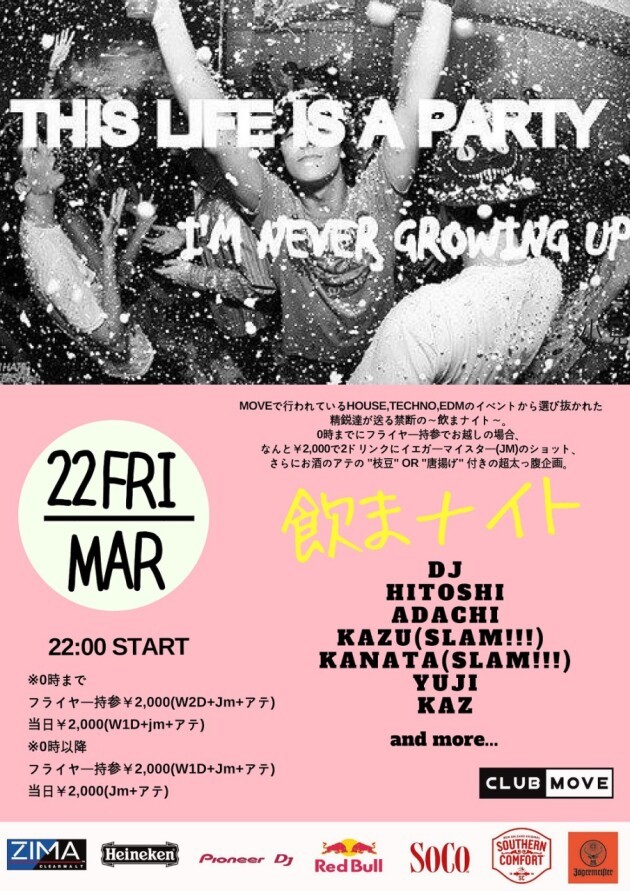 MOVEで行われているHOUSE,TECHNO,EDMのイベントから選び抜かれた精鋭達が送る禁断の~飲まナイト~。