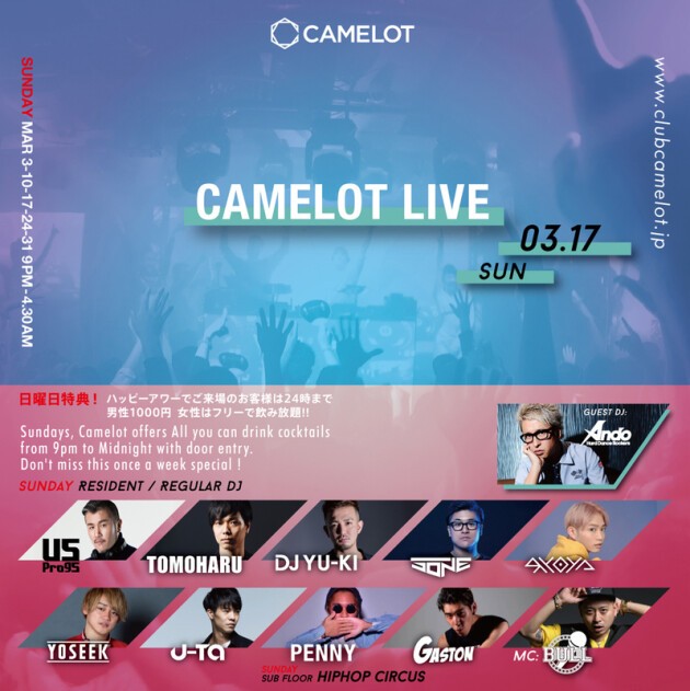 ※CLUB camelot will conduct ID check on all visitors. A photo ID with age verification is required at entrance.