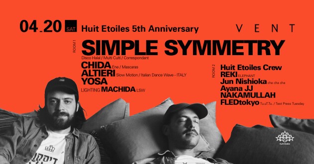 It's been 5 whole years since the Huit Etoiles party was established, bringing in talented global artists to play at Japan's top club, further expanding Japan's Nu Disco scene - it's time to celebrate! According to Timeout magazine, Japan's Nu Disco scene has become an established one, leading the region in this genre. Bringing forth passion for ethnic rhythms, instruments, primitive vibes, and underground dance music, Simple Symmertry's set will be something to behold - so don't miss it at Huit Etoiles 5-year anniversary party, only at VENT!