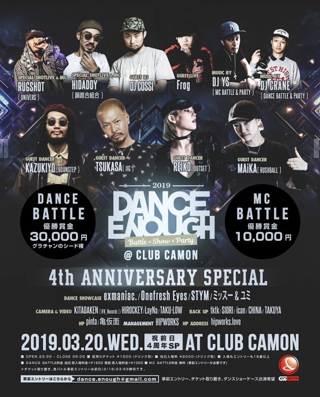 【DANCE ENOUGH 2019】3/20(水/祝前日)☆『DANCE ENOUGH 2019』4th ANNIVERSARY SP★★DANCE BATTLE & MC BATTLEエントリー随時募集中!!!!