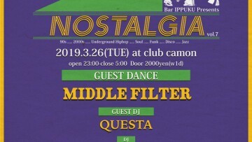 【NOSTALGIA vol.7】3/26(火)☆奇数月第4火曜開催『NOSTALGIA』1周年祭☆GUEST DANCERにMIDDLE FILTER、GUEST DJにDJ QUESTAが登場★★
