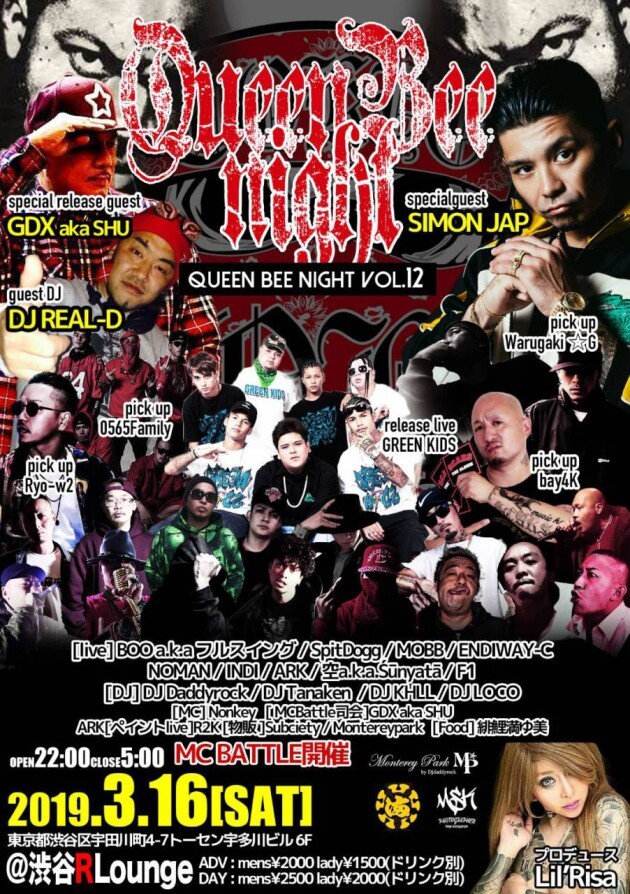 LIVE : BOO a.k.a フルスイング / SpitDogg / MOBB / ENDIWAY-C / NOMAN / INDI / ARK / 空 a.k.a. Sunyata / F1