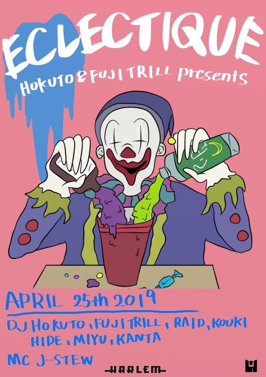 DJ HOKUTOが5年に渡り毎年2回のヨーロッパツアーを敢行する中で、アムステルダムで出会った今までのDJの常識を覆すDJスタイル“Eclectic”。そして、音楽のメッカヨーロッパで毎夜繰り広げられる、自由な音楽感と遊びのスタイルに衝撃を受け、そのパーティ感とDJスタイル再現するパーティとしてスタートしたのが『ECLECTIQUE』。
