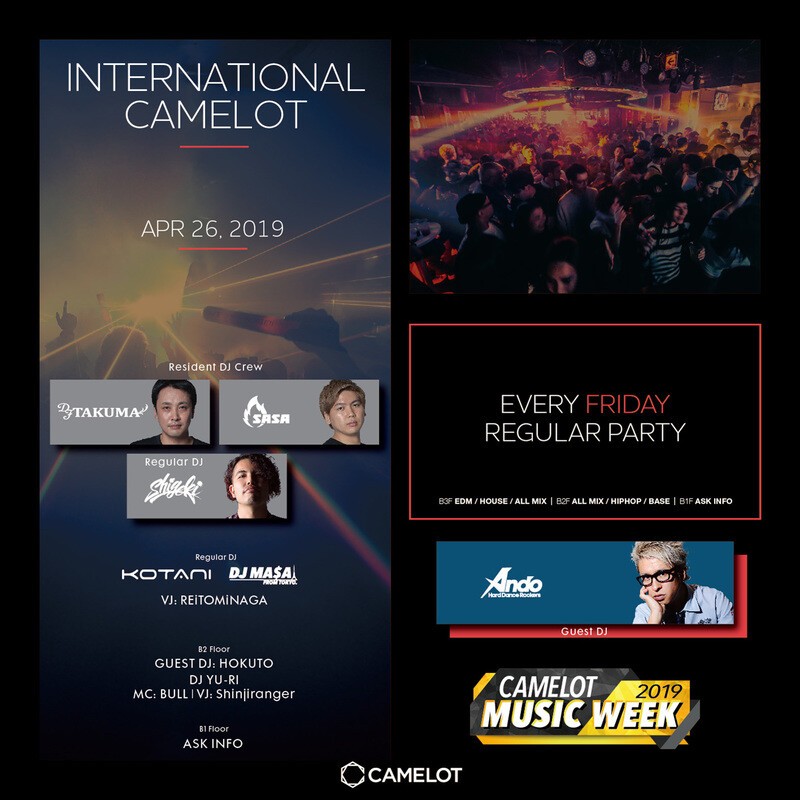 ※CLUB camelot will conduct ID check on all visitors. A photo ID with age verification is required at entrance.