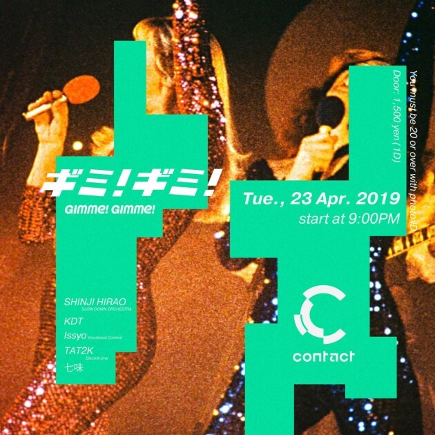Contactの月曜日を盛り上げたWorld Connection “Inherited Future”を経て、ニューパーティ「ギミ!ギミ! – Gimme! Gimme! (To the break of the day) -」が始動。KDT、Issyoを中心にディスコ/ハウスラヴァーを招聘し、平日の Contact フロアを演出する。