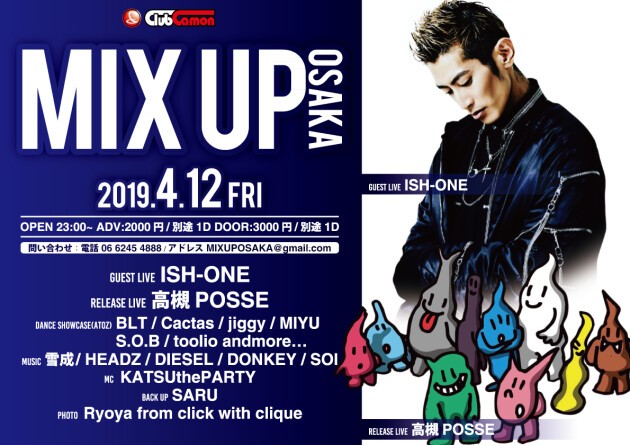 【MIX UP】4/12(金)☆偶数月第2金曜開催『MIX UP』☆☆GUEST LIVEにISH-ONE、RELEASE LIVEに高槻POSSEが登場★★