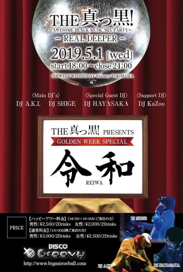 令和元年スペシャルとしてDJ HAYASAKA を迎えDJ A.K.I.とDJ SHIGEとDJ KaZooが