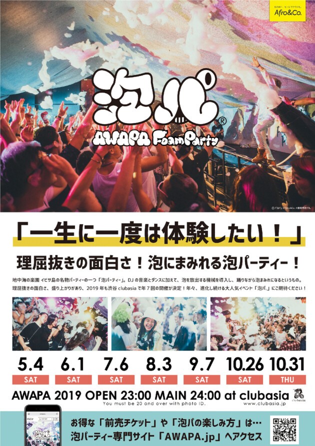 地中海の楽園イビサ島の名物の一つ「泡パーティー」。音楽とダンスに加えて、泡を放出する泡キャノンを導入し、参加者が踊りながら泡まみれになるというもの。