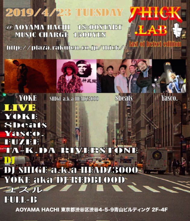 2018/ 4/23 tue thick.lab @青山蜂 -AOYAMA HACHI 18:00 OPEN 23:30close hiphop party since 2002