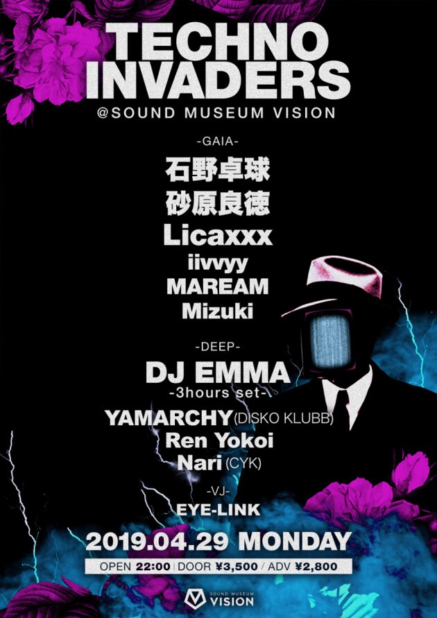 石野卓球、DJ EMMA、砂原良徳、Licaxxx、iivvyyと異色の豪華ラインナップが実現!!!