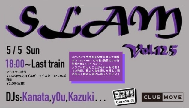 MOVEにて立命館大学生が中心で開催中の "SLAM!!" の令和1発目のGW特別番外編chillイベント。