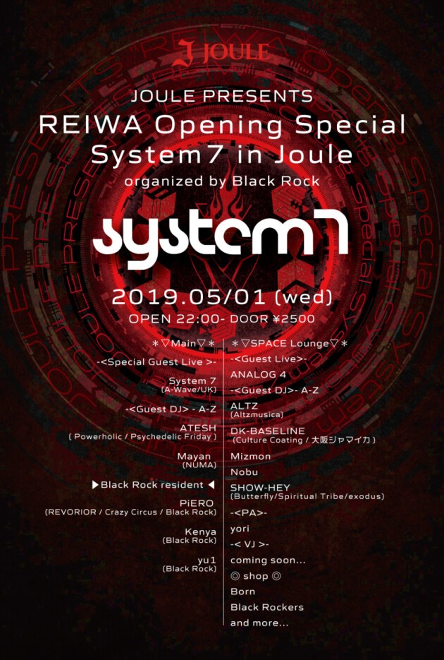 "令和"始まりの特別な日に、生きる伝説"System 7"を招いて、REIWA Special Opning Party 開催!
