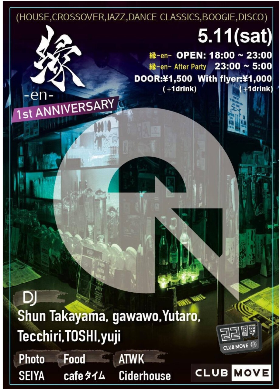 お客様、DJ、デザイナー、CLUB MOVE、皆様のお陰で縁-en-は1周年を迎えることができました。