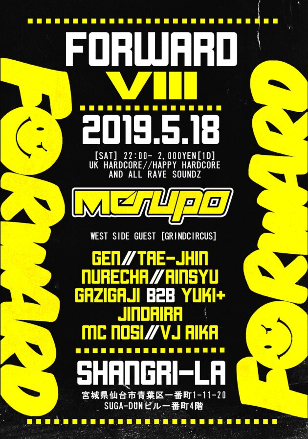 仙台の愛すべき小箱『Shangri-La』にて行われるHARDCORE Party『FORWARD』8回目!