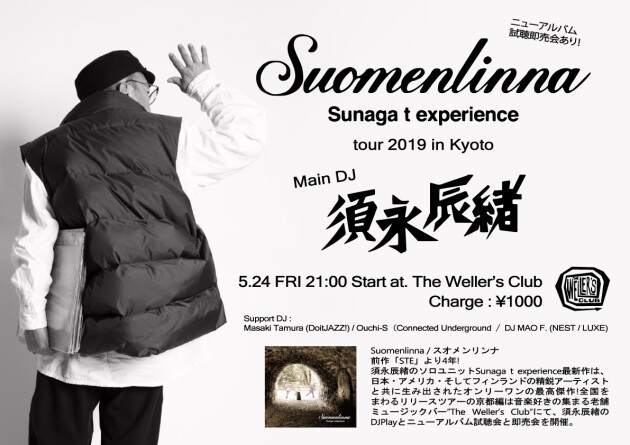 Suomenlinna / スオメンリンナ前作「STE」より4年!須永辰緒のソロユニットSunaga t experience最新作は、日本・アメリカ・そしてフィンランドの精鋭アーティストと共に生み出されたオンリーワンの最高傑作!全国をまわるリリースツアーの京都編は音楽好きの集まる老舗ミュージックバー”The Weller’s Club”にて、須永辰緒のDJPlayとニューアルバム試聴会と即売会を開催。