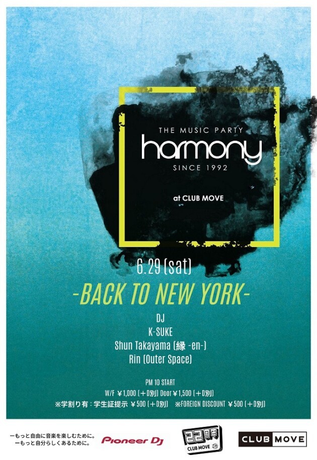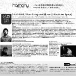 6月のHARMONYは先日1周年を迎えた 縁 -en-よりShun TakayamaとDeep House界、期待の担い手のRinを迎え