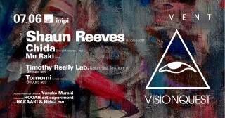 Ever since its establishment, the always-on-the-cutting-edge label Visionquest has been a consistent provider of strange and spaced-out tunes within the dance music underground. Now, the founder, Shaun Reeves, will be coming to Japan for his much awaited first performance at VENT's "inipi" party, to be held on July 6th!