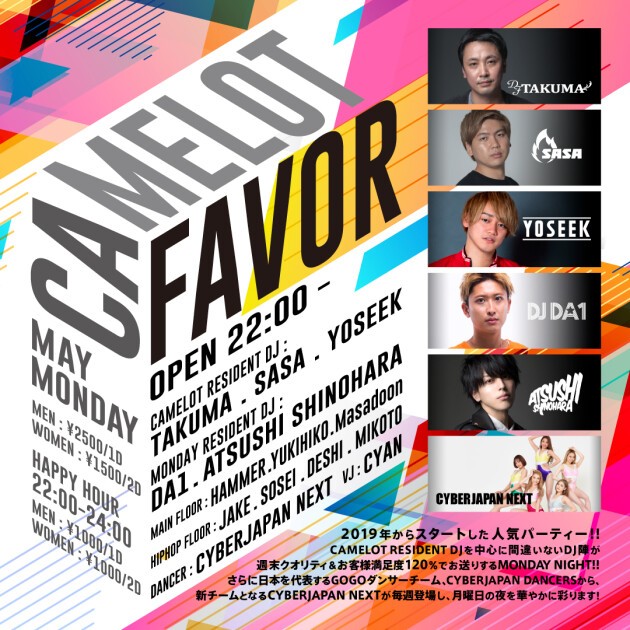 ※CLUB camelot will conduct ID check on all visitors. A photo ID with age verification is required at entrance.