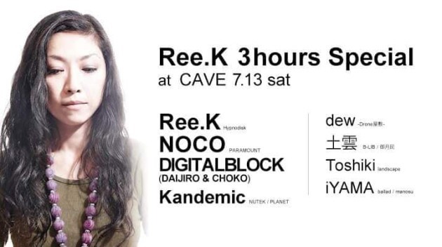Space Gathering主催Ree.Kを筆頭にPARAMOUNTのレジデントを務めるNOCO、DIGITAL BLOCK代表DAIJIRO & CHOKO他、次世代ダンスミュージックシーンを担う若手DjのKandemic、dew、土雲らがリニューアルされたCAVEに集結。Ree.Kによる3時間のサウンドジャーニとNOCOによる洗練されたミニマルグルーブ、百戦錬磨のDIGITAL BLOCK DJ’sが様々な世代のDJ達と共に新たなストーリーを創造する。