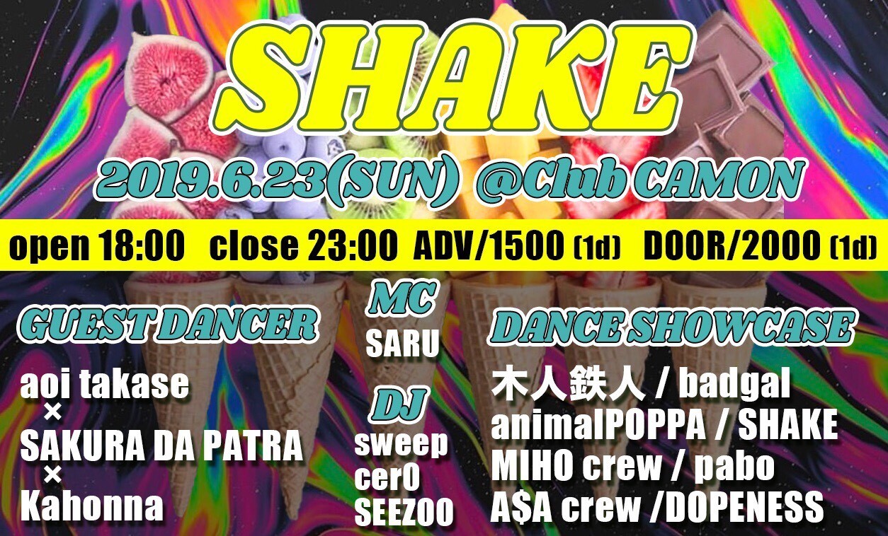 【SHAKE】6/23(日)☆HIP HOP PARTY『SHAKE』★★GUEST DANCERにaoi takase×SAKURA DA PATRA×Kahonnaが登場☆☆ダンサー多数出演★★
