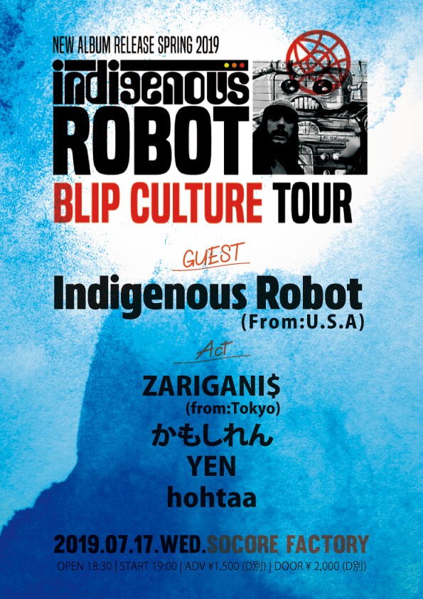 3年ぶりにU.S.Aから来日する「Indigenous Robot」に東京の「ZARIGANI$」が帯同しての全国ツアー開始!!