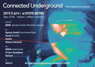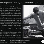 Currently he is playing in an underground techno/house party『Connected Underground』,『Deep Underground』,『yelltail』, all held in "Kyoto Metro" that is legendary night club in this historical city.