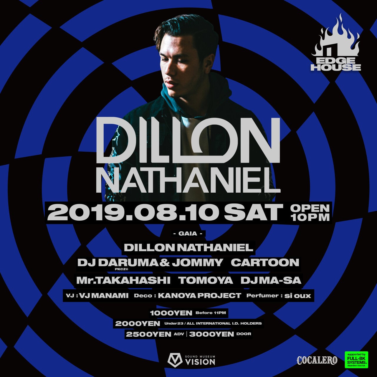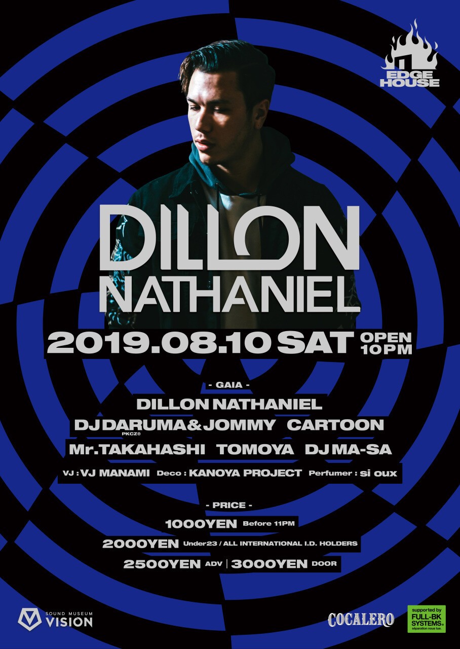 EDGE HOUSE on August 10th welcomes DILLON NATHANIEL’s long-awaited Japan debut. He has made a great debut in EDC Las Vegas this year and the collab with Malaa released from Tchami's label "Confession" is also a big hit.