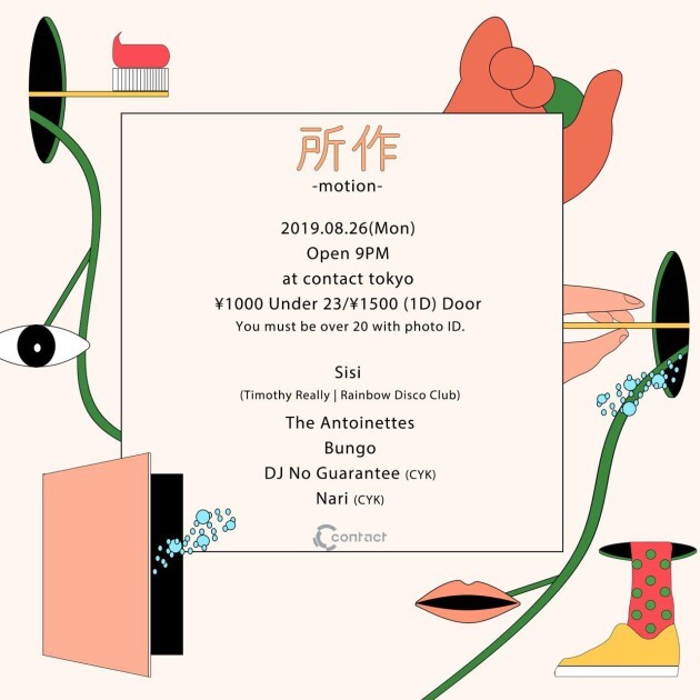 Contactの平日の彩りとなる所作 “motion”は、NariとDJ No Guarantee、ハウスミュージック・コレクティブCYKの2人がホストするニューパーティ。