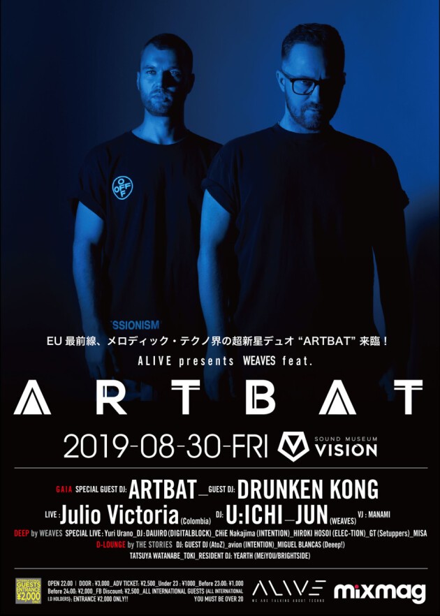 前回スペインからDOSEMを招聘し素晴らしい一夜を魅せたWEAVESがこの度紹介するのは、ウクライナの超新星と称され、ワールドワイドにスターダムへと一直線に駆け上がるライジングスター、の“ARTBAT”だ。名門レーベルからヒットを飛ばす、注目のトラックメーカーだ。