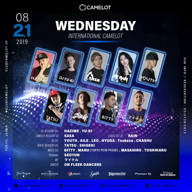 ※CLUB camelot will conduct ID check on all visitors. A photo ID with age verification is required at entrance.