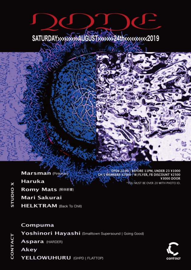 世界のアンダーグラウンド・シーンの中でも、個々に特異な境遇から表現活動を続けるDJたちがContactのNODEで交わる。Studio Xには、オランダはロッテルダムを拠点に、テクノ/ハウスからエレクトロやアシッドサウンド/EBMまでを内包しながら良質なリリースを続けるレーベル〈Pinkman〉と〈Charlois〉を主宰し、レコードストアも運営するMarsmanが初来日。レーベルオーナーならではのフレキシブルで予測不可能なスタイルを魅力に、ヨーロッパ各地でレーベルを率いてのクラブナイトや南北アメリカでのツアー、さらにラジオホストなど幅広い活動を精力的に続けたことで生まれた独自性が評価されている稀有なDJである。