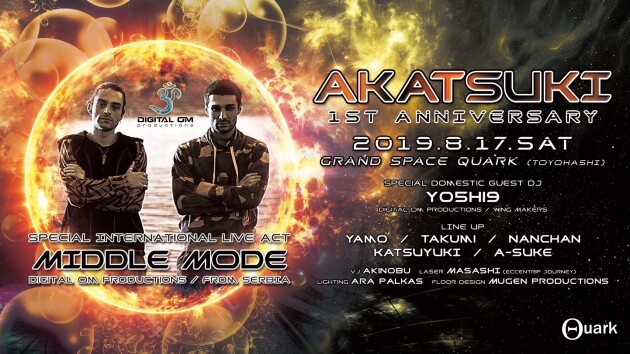 AKATSUKI 1st ANNIVERSARY PARTY ∞ AKATSUKI ∞ ◉NATSUNO AKATSUKI ◉ 2019/8/17(SAT) Place @grand space Quark Start 22:00〜 Entrance Door300