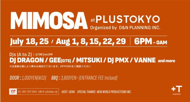 そのMIMOSAが話題の新ベニュー『PLUSTOKYO』のルーフトップで当時と同じ毎週木曜日に復活をする。