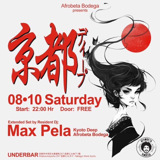 Afrobeta Bodega and Underbar Kyoto would like to invite you to KYOTO DEEP a space open to all like-minded individuals; in the beautiful city of Kyoto. Bridging the gap for locals, foreigners living in Kansai and tourists alike looking for good music and having a great time. We will be inviting local and international talent to take part in what’s going to be one amazing night alongside its Founder/Resident DJ Max Pela.