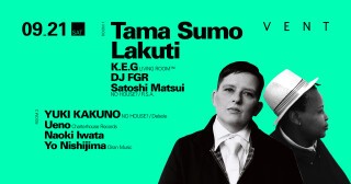 Tama Sumo, marquee DJ of the famed Panorama Bar, respected by DJs all over the globe, and Lakuti, label owner, management company operator, and engineer, not to mention promoter who supports the scene from the backend, will be coming to VENT on September 21 for an epic double-headlining performance!
