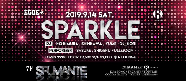 O KIMURA、SHINKAWAをレジデントに迎え輝く世界観を五感全てで感じ取れるハウスパーティ『SPARKLE』 第6回目となる今回は、ゲストにYUMEが登場! 7Fでは人気パーティ『SPUMANTE』が開催される。