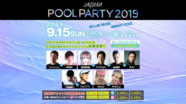 この夏最後の「LAGUNA POOL PARTY」!!超豪華ゲストとORCA NAGOYAとCLUB SANGOのDJ&MC陣が登場!