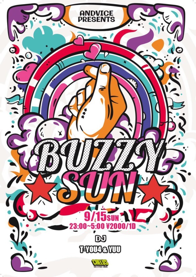 9/15(Sun)23:00 ~ 5:00 "BUZZYSUN" at CAELUS(http://caelus.jp/) DOOR: 2000yen / 1drink DJ's: T-YOU4 & YUU